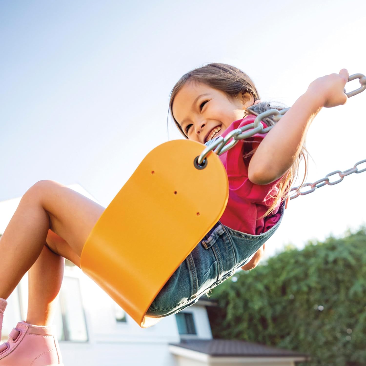 تم أيضًا تصميم سلاسل البلاستيسول التي تشكل الأرجوحة لتوفير راحة كبيرة لأطفالك الصغار. لمزيد من الرفاهية، فإن المقعد المتأرجح سميك وواسع ولكنه مرن أيضًا.