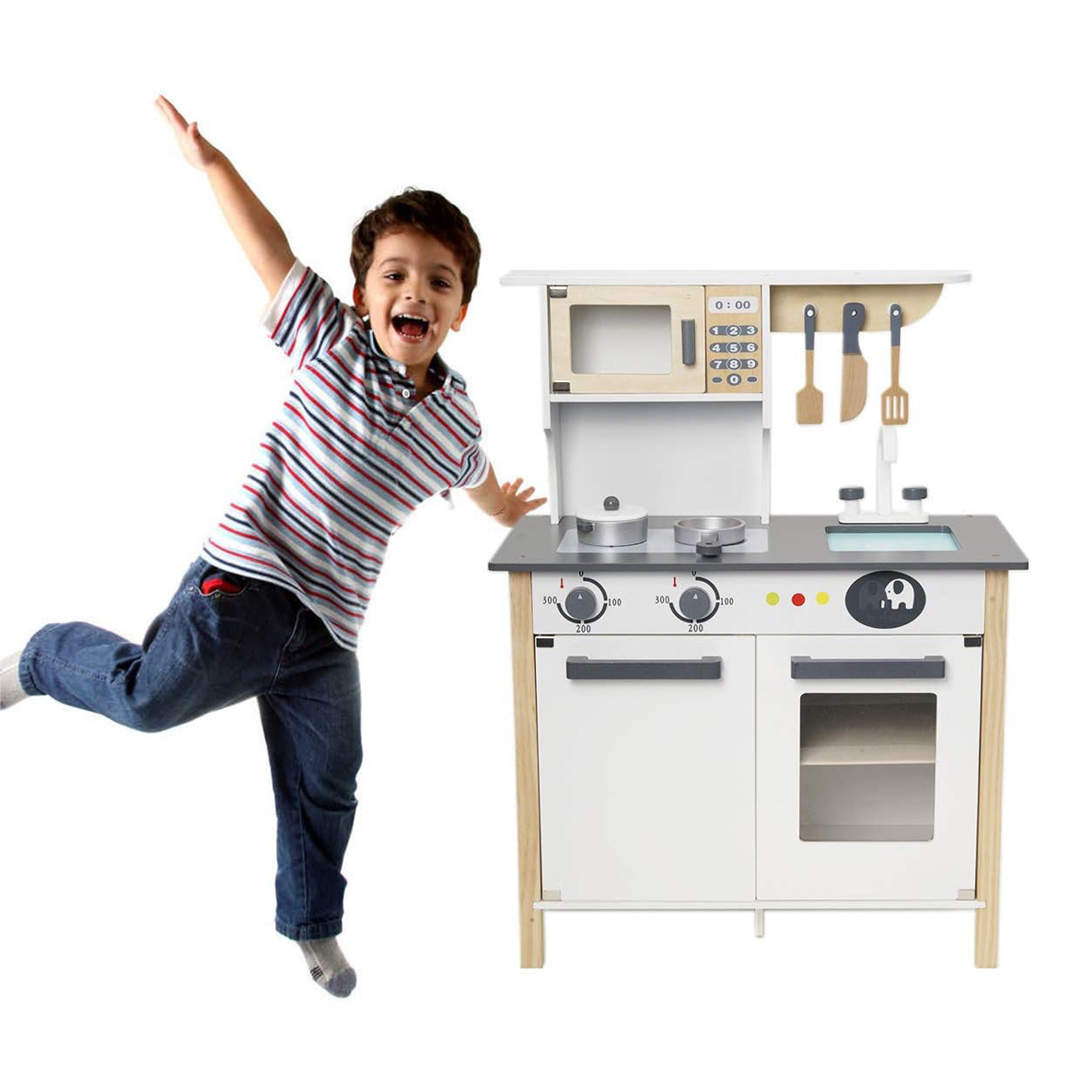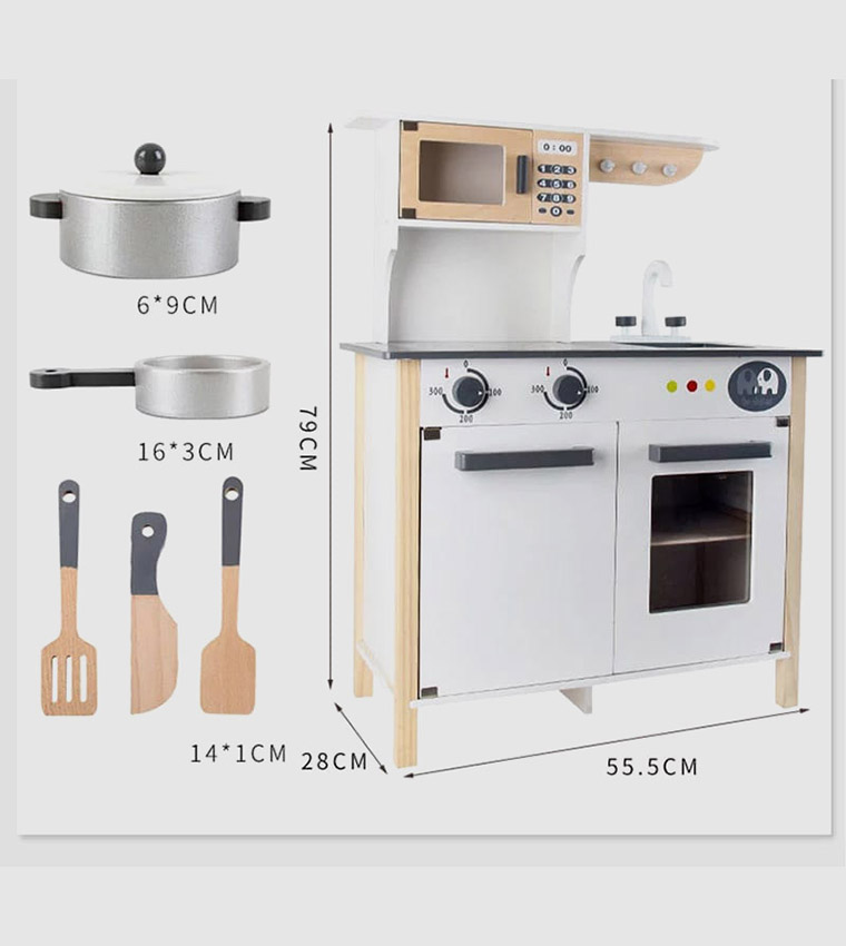 مجموعة المطبخ الخشبية مثالية للأطفال الصغار الذين يحبون الطبخ واللعب في المطبخ.