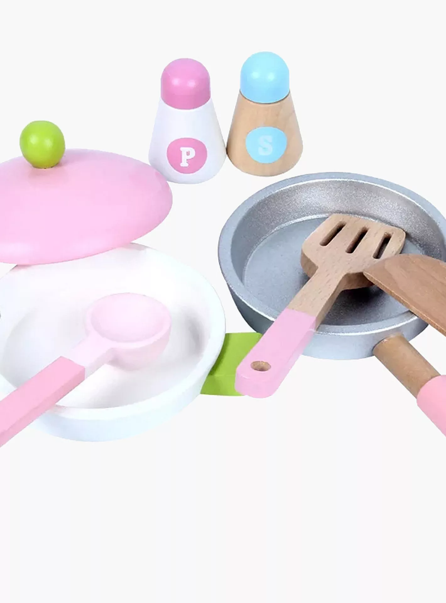 كما أنها تأتي مع مجموعة متنوعة من أدوات المطبخ، بما في ذلك وعاء ومقلاة وملعقة لتعزيز تجربة الطبخ واللعب.