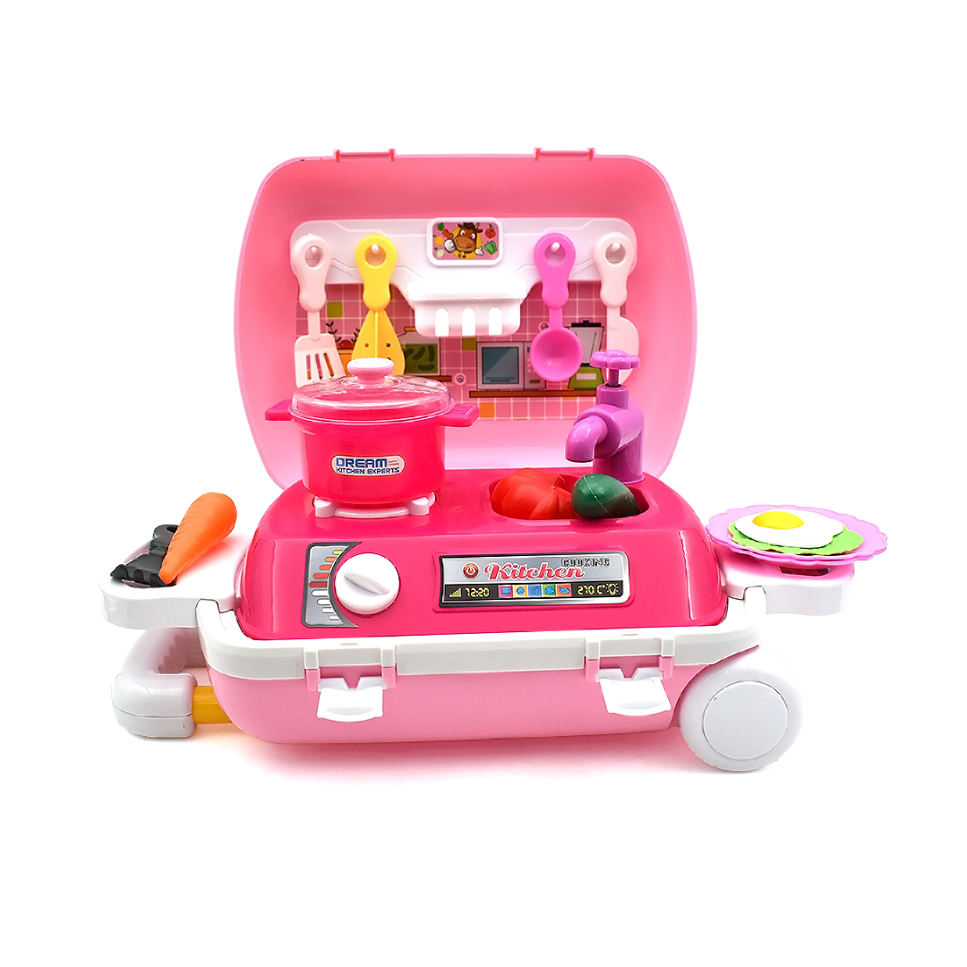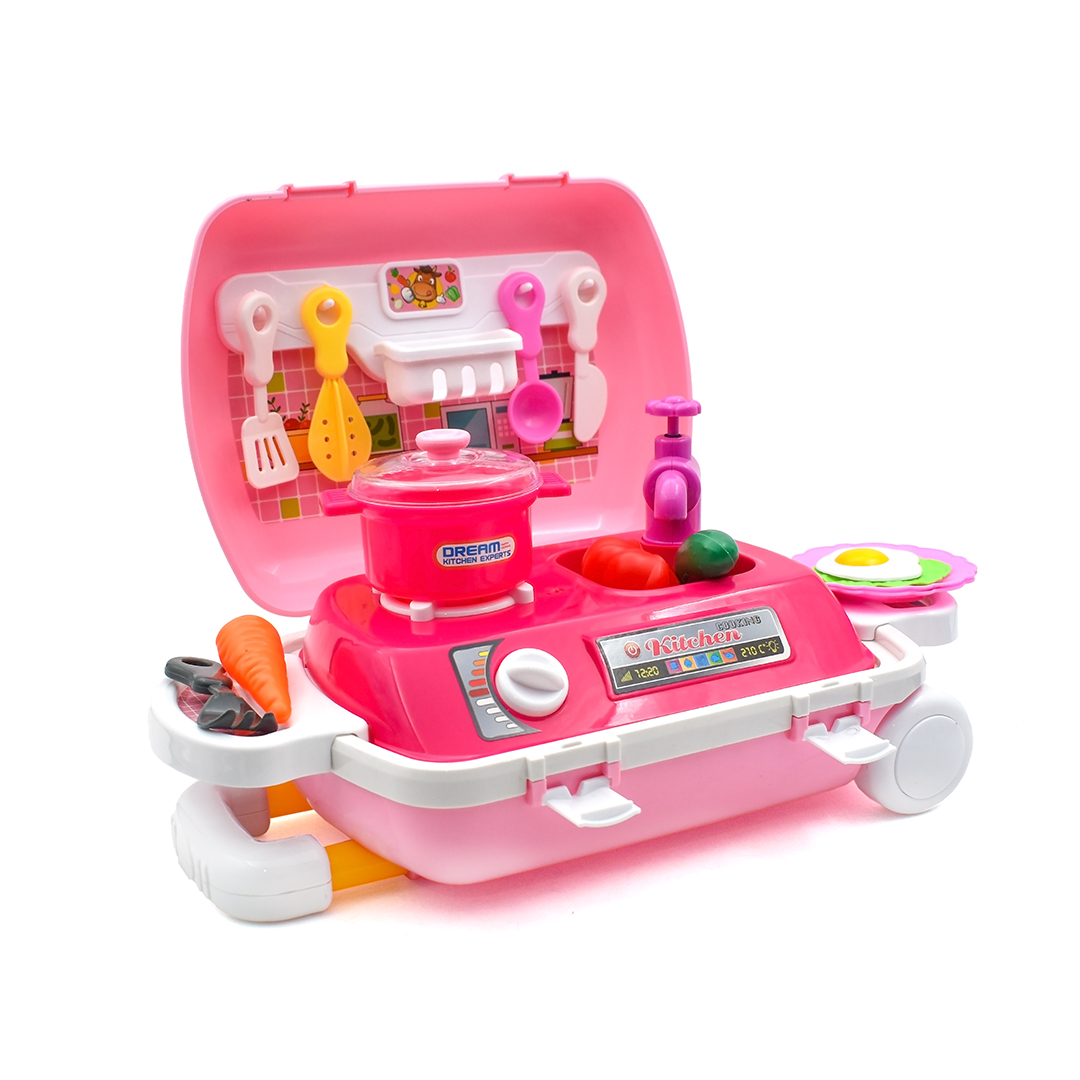 حقيبة المطبخ، حقيبة قابلة للتحويل الى طاولة طبخ مصغرة، مع مجموعة من أدوات المطبخ، بطول 32 سم