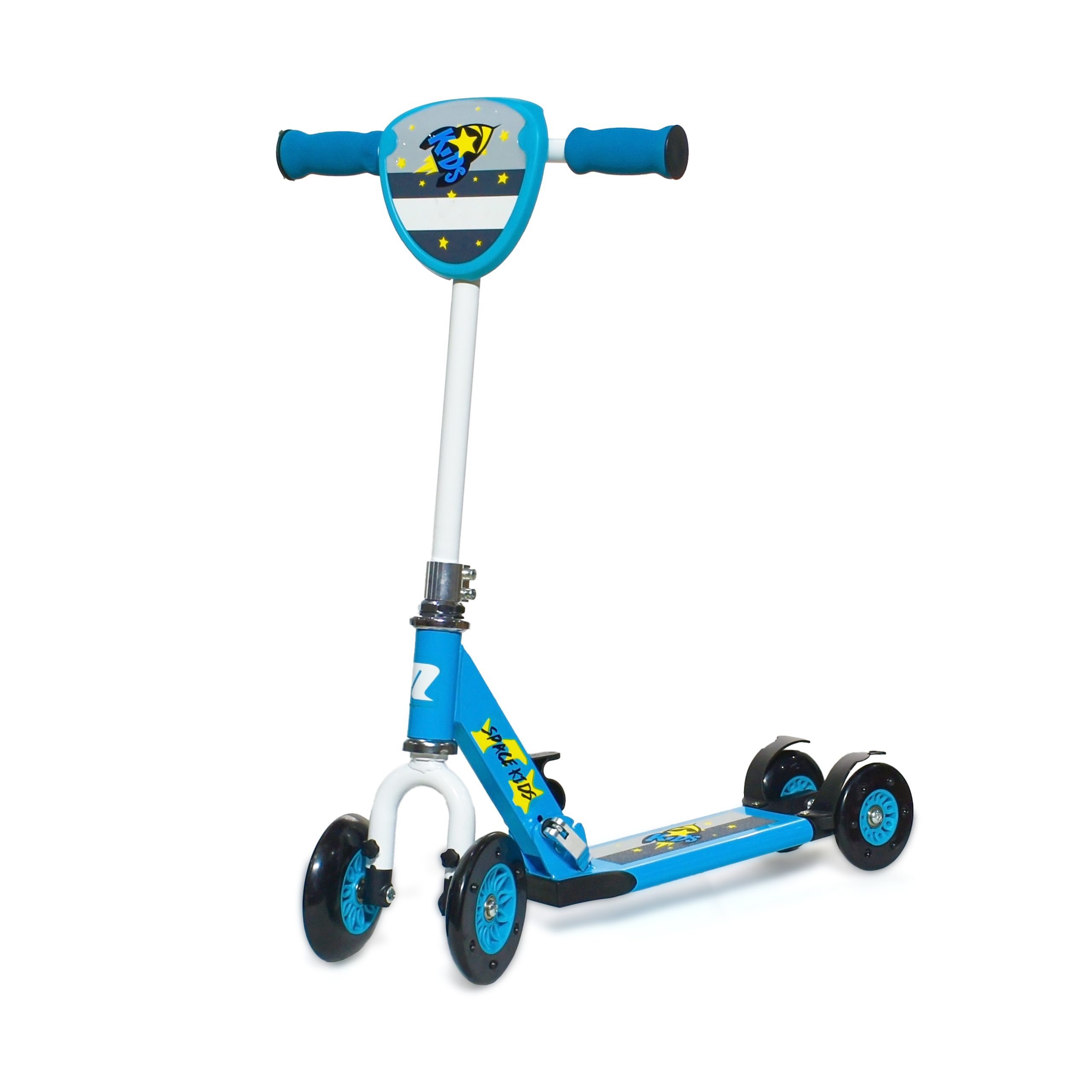 سكوتر رباعي العجلات قابل للتعدبل الي ثلاثي او ثنائي العجلات، مع وجود مكابح خلفية قوية بالاضافة الي سطح مانع للانزلاق.