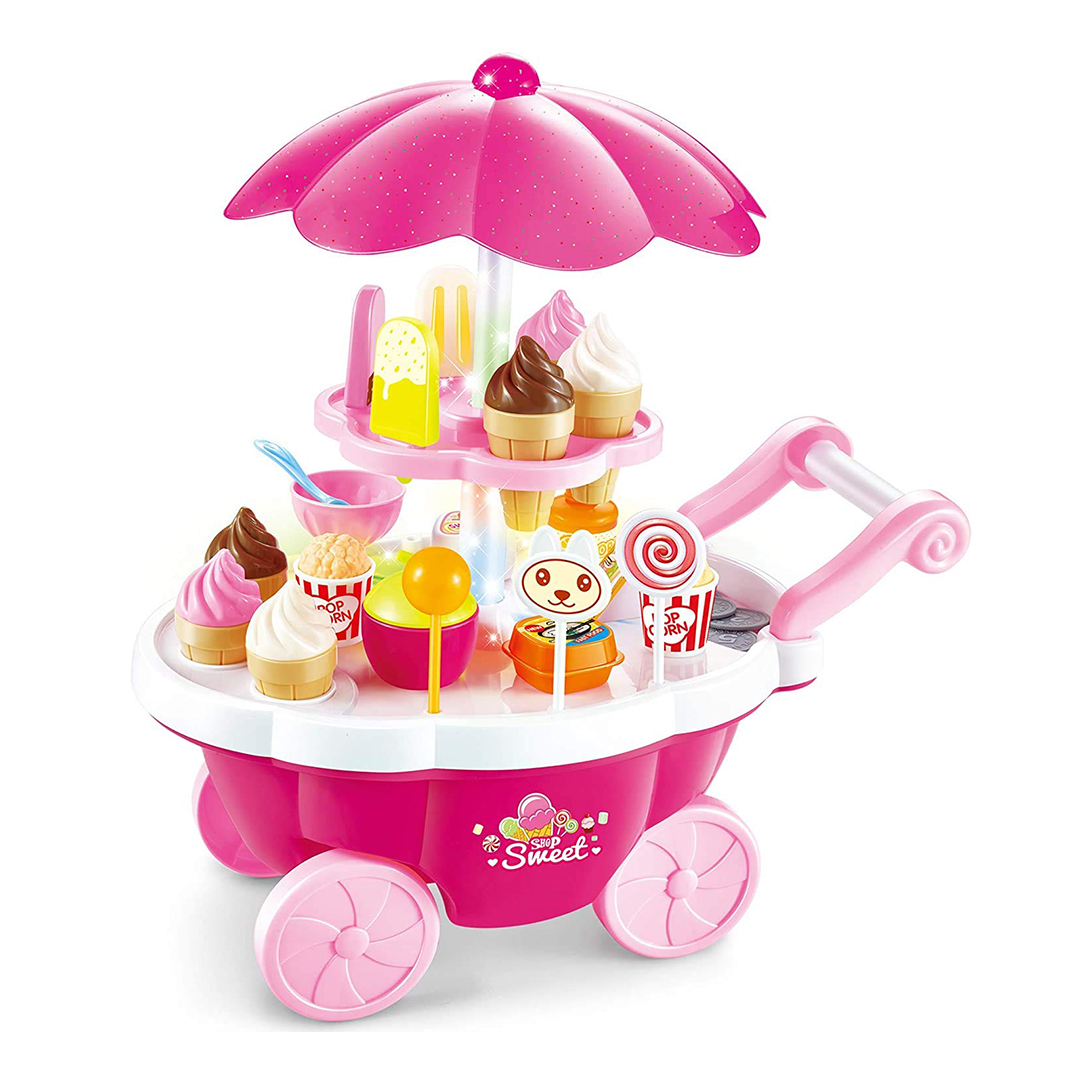 عربة الحلويات الرائعة, تأتي مع حامل آيس كريم ، نكهات مختلفة ، أكواز ، مغرفة آيس كريم.