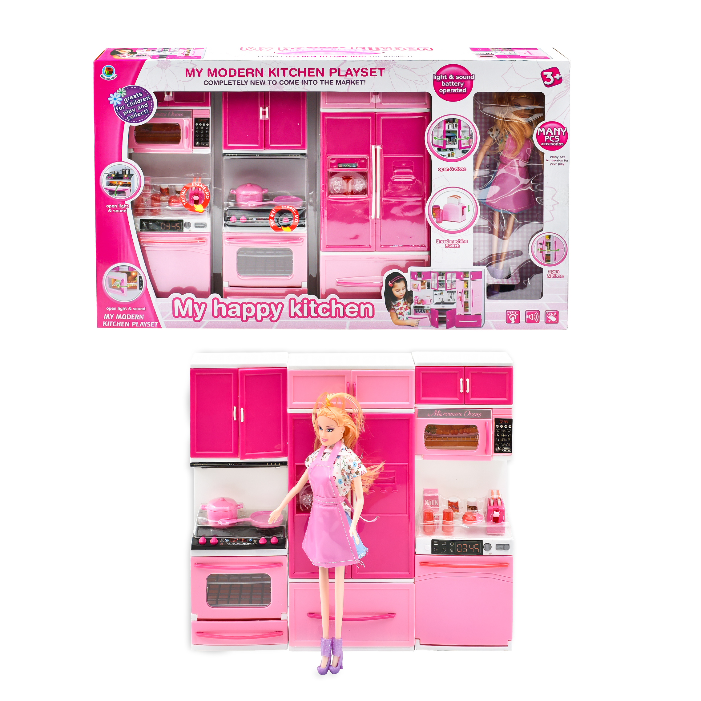 مجموعة مطبخ تظاهرية متكاملة مع اضواء وأصوات واقعية.