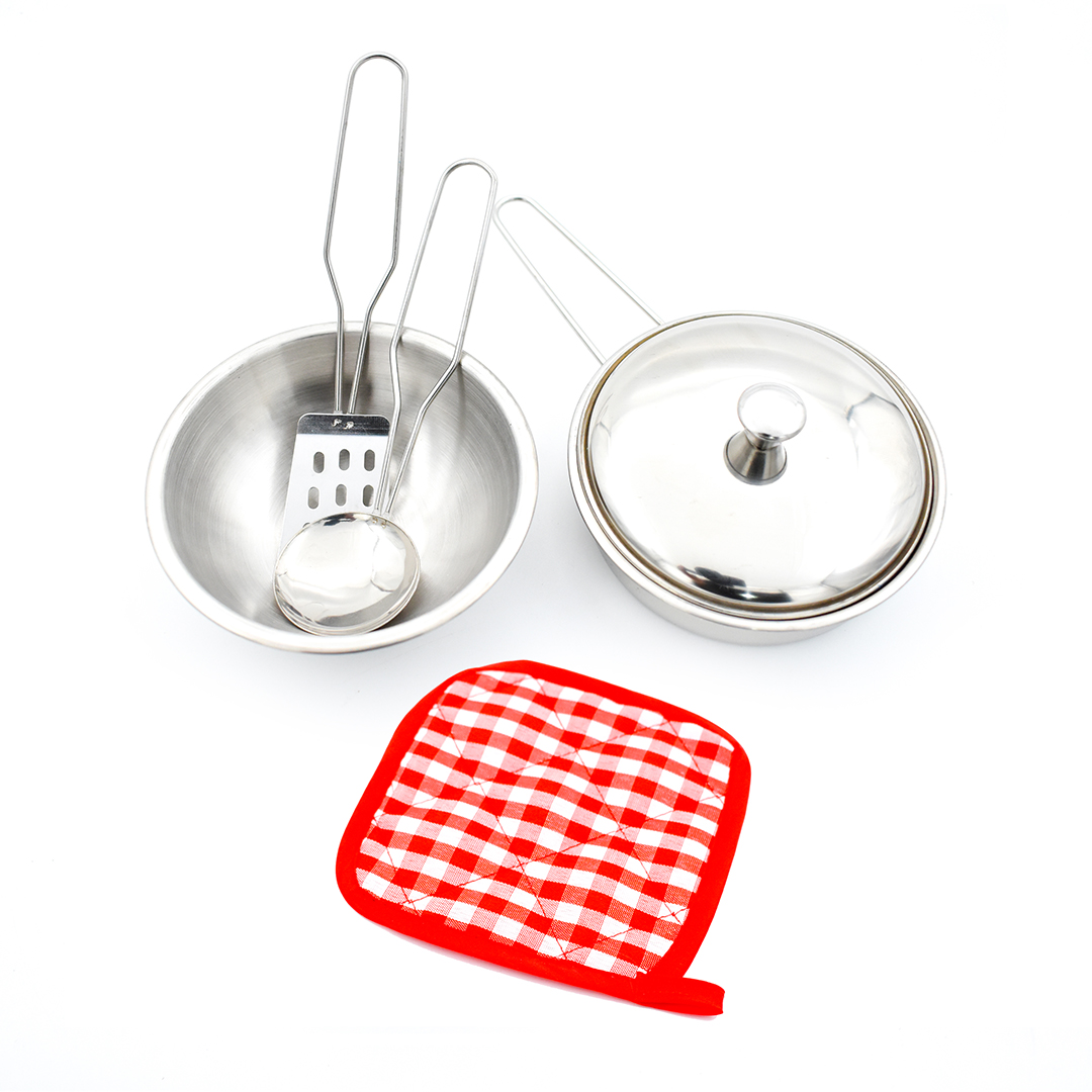 – أواني الطهي والأواني مصنوعة من الفولاذ المقاوم للصدأ ، مما يجعلها متينة للعب اليومي وسهلة التنظيف.nتعلم مهارات الحياة المهمة.