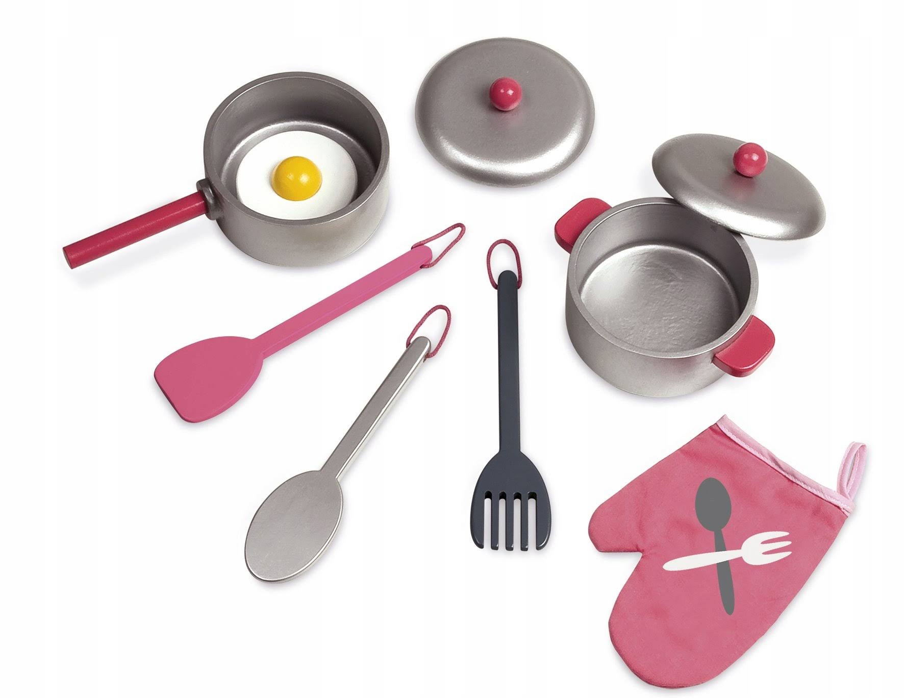 تشمل هذه المجموعة: 2 × مقلاة، 3 × ملحقات المطبخ، 1 منشفة مطبخ و1 × حوض.